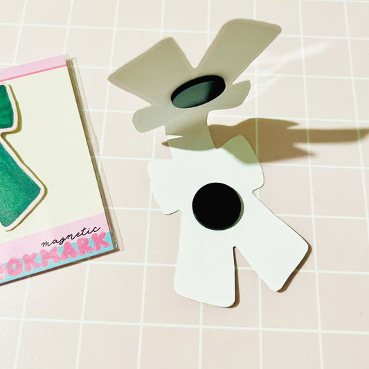 Magnetic Bookmark, Green Bow with Pink Hearts